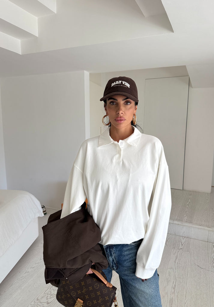 Maglia polo over size in cotone caldo. Tg unica