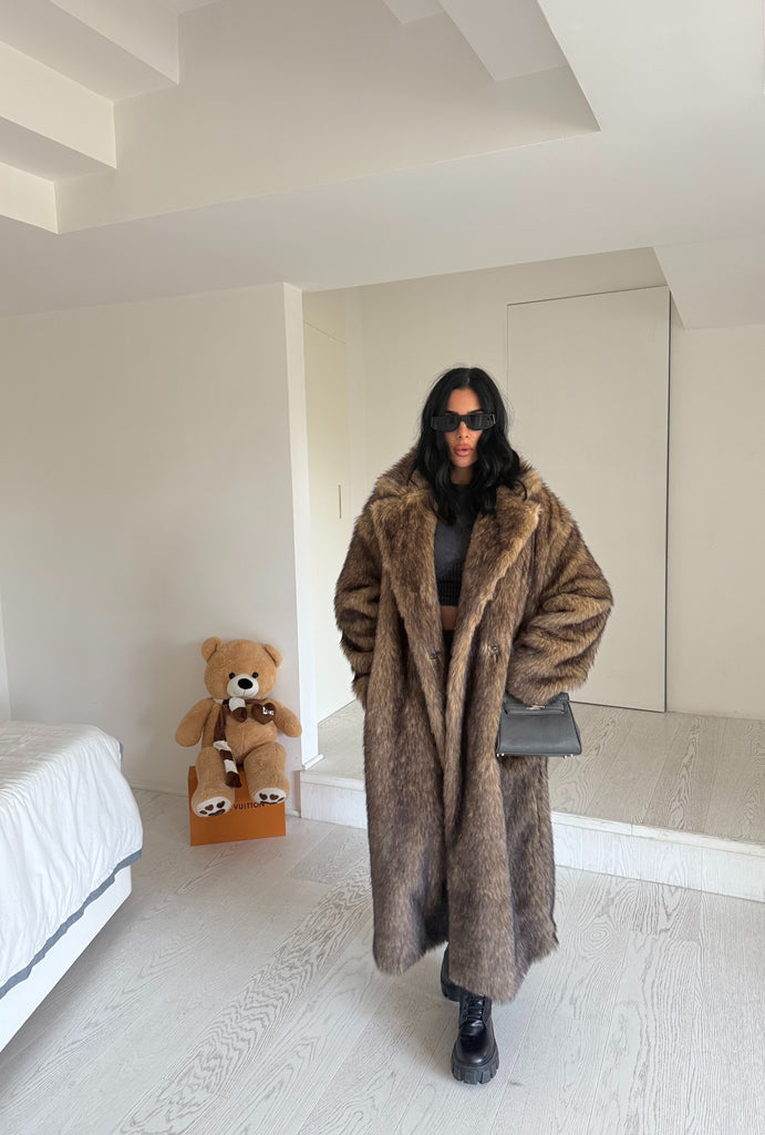 Giaccone lungo realizzato in eco pelliccia. Over size Tg unica