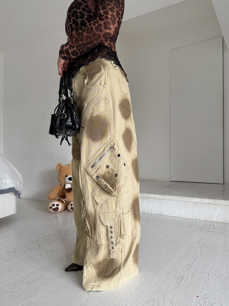 Jeans palazzo con tasconi. Tela rigida. La modella indossa S