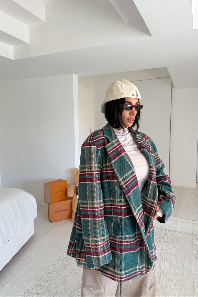 Giacca over size con 2 bottoni sul davanti e maxi spalline. Tg unica