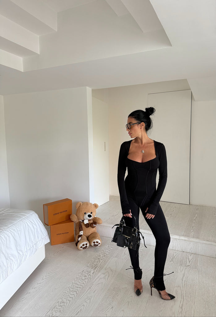 Jump in lycra elasticizzata e cuciture a vista. Tg unica