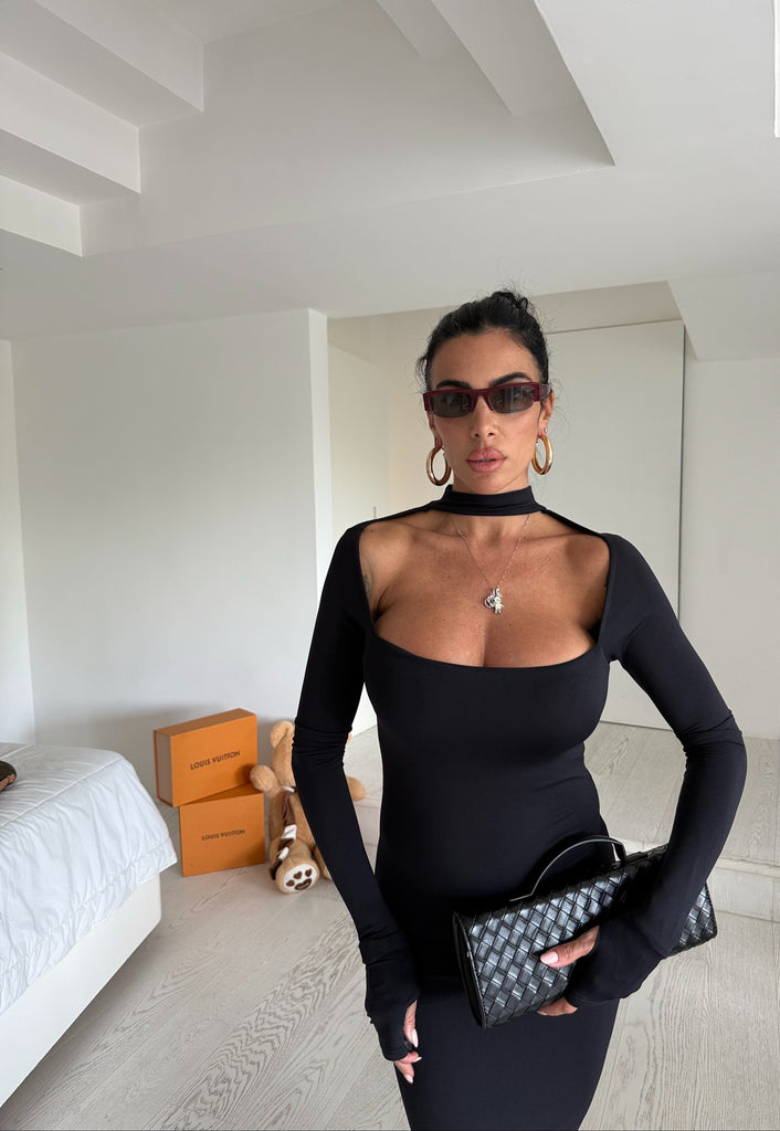 Abito lungo in lycra elasticizzata con coppe preformate. Tg unica